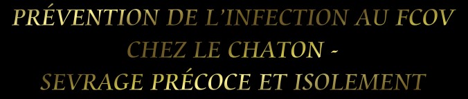 La prévention du FCoV chez le chaton est connue sous le nom de technique de « sevrage précoce et isolement » car il s’agit précisément des actions à entreprendre. Les chatons sont protégés contre l’infection grâce aux anticorps qu’ils reçoivent du lait maternel, mais lorsque ce nombre d’anticorps diminue, les chatons sont potentiellement menacés par l’infection par le FCoV et les risques qui lui sont inhérents. Le sevrage précoce et l’isolement ont permis aux éleveurs de continuer à faire naître des chatons de femelles qui sont activement infectées par le FCoV et excrètent le virus.